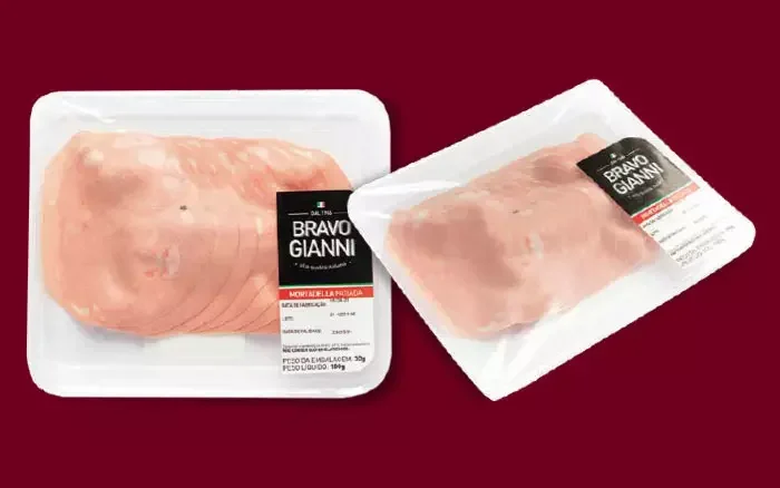 Feita exclusivamente com cortes de porco cuidadosamente selecionados de acordo com a tradição italiana. A mortadela é de cor rosa, tem a roma intenso e é levemente picante.