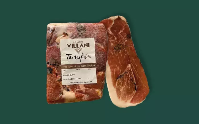 Ingredientes: Carne Suína, Sal, trufa do verão 1,2% (Tuber Aestivum Vitt) e aroma artificial de trufa. NÃO CONTÉM GLÚTEN. | ||