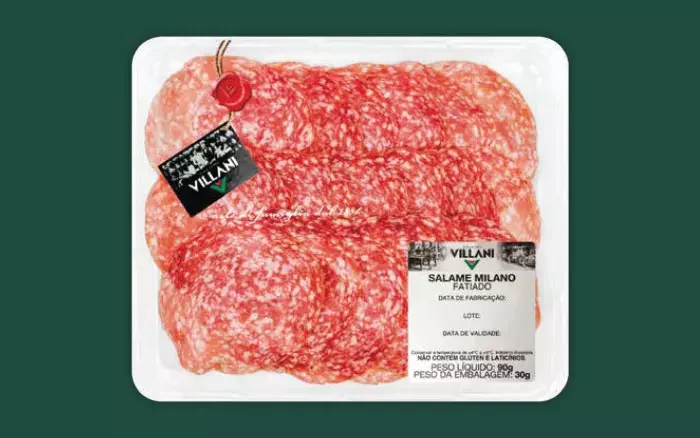 Autêntico salame milanês, em sua formulação leva pimenta do reino moída, é leve e muito saboroso.